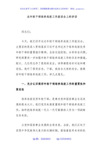 / 在年轻干部培养选拔工作座谈会上的讲话