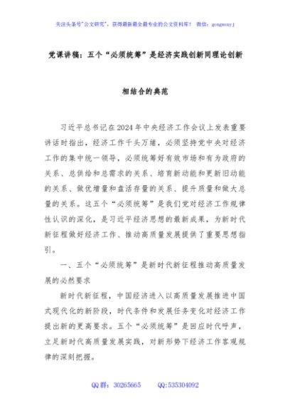 / 党课讲稿:五个“必须统筹”是经济实践创新同理论创新相结合的典范