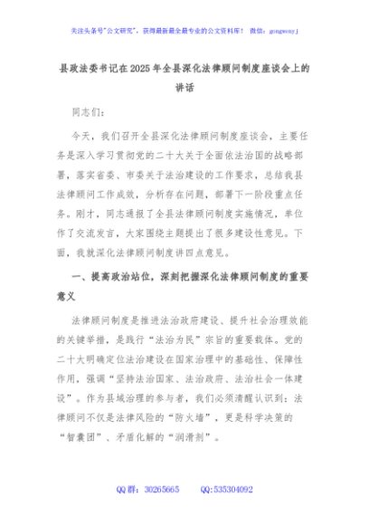 / 县政法委书记在2025年全县深化法律顾问制度座谈会上的讲话