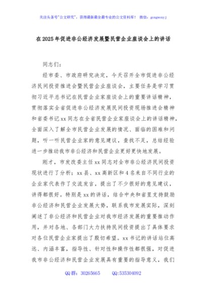 / 在2025年促进非公经济发展暨民营企业座谈会上的讲话