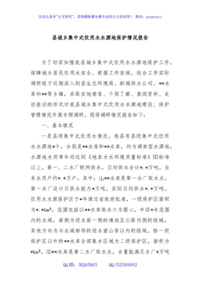 / 县城乡集中式饮用水水源地保护情况报告