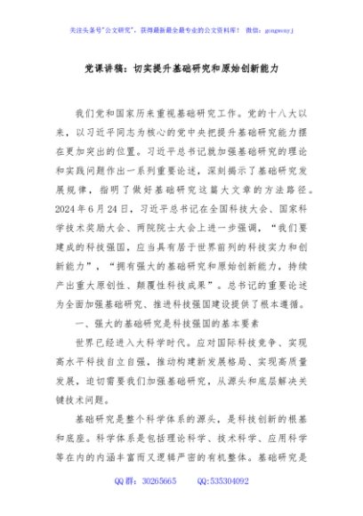 / 党课讲稿:切实提升基础研究和原始创新能力