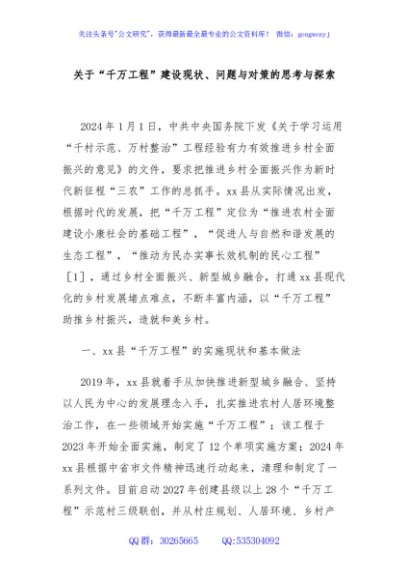 / 关于“千万工程”建设现状、问题与对策的思考与探索