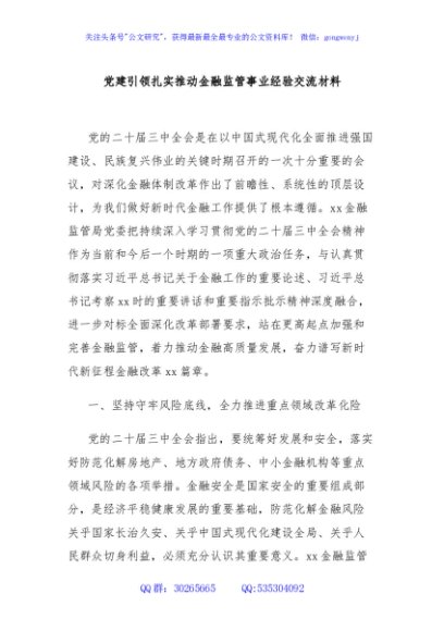 党建引领扎实推动金融监管事业经验交流材料