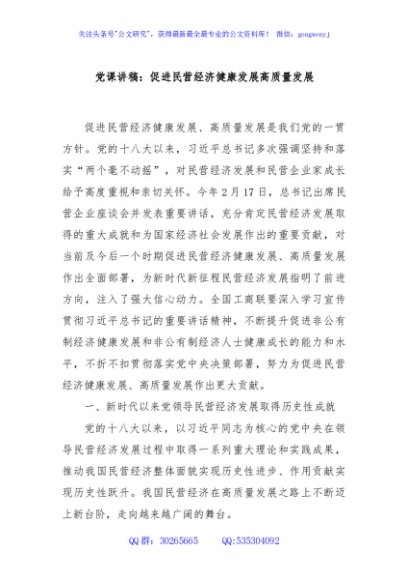 / 党课讲稿:促进民营经济健康发展高质量发展