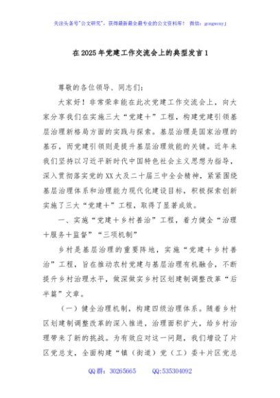 / 在2025年党建工作交流会上的典型发言1