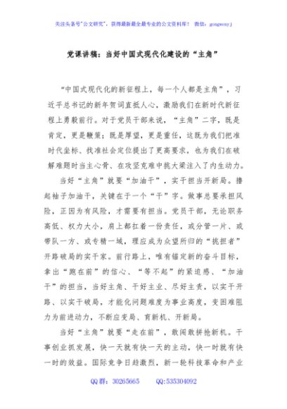 / 党课讲稿:当好中国式现代化建设的“主角”