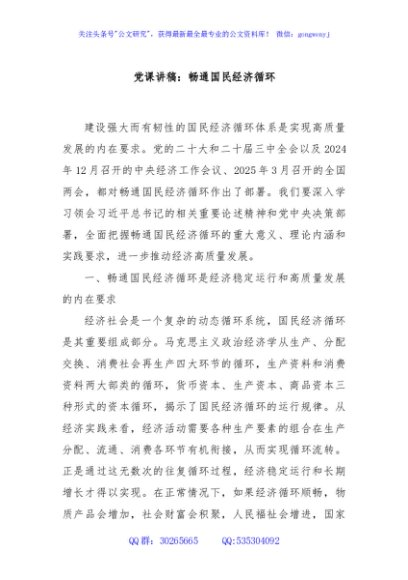 / 党课讲稿:畅通国民经济循环