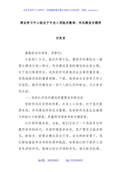 / 理论学习中心组关于中央八项规定精神、作风建设专题研讨发言