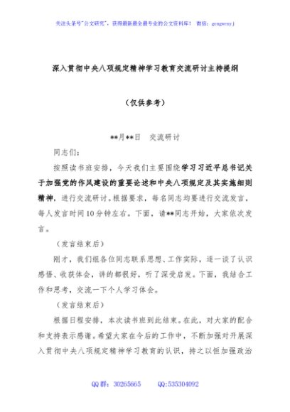 / 深入贯彻中央八项规定精神学习教育交流研讨主持提纲