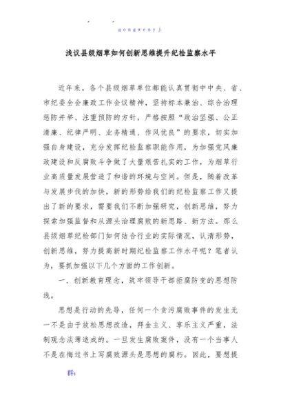 / 浅议县级烟草如何创新思维提升纪检监察水平