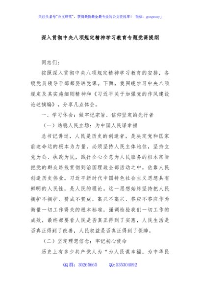/ 深入贯彻中央八项规定精神学习教育专题党课提纲