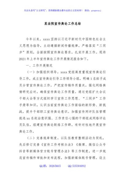 / 某法院宣传舆论工作总结