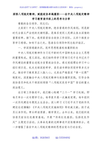 / 深悟八项规定精神,赋能政协卓越履职——在中央八项规定精神学习教育读书班上的思考与分享