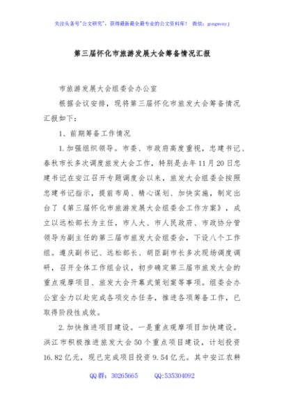 第三届怀化市旅游发展大会筹备情况汇报