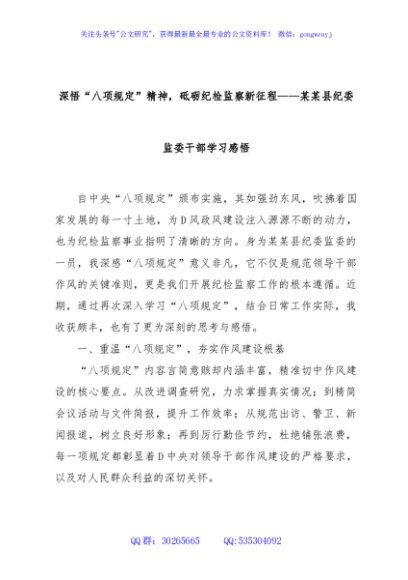 / 深悟 “八项规定” 精神,砥砺纪检监察新征程 —— 某某县纪委监委干部学习感悟