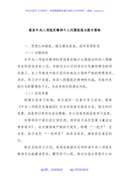 / 落实中央八项规定精神个人问题检视与提升策略