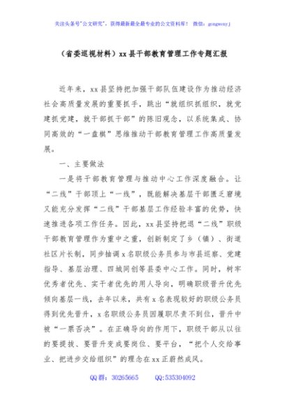 / (省委巡视材料)xx县干部教育管理工作专题汇报