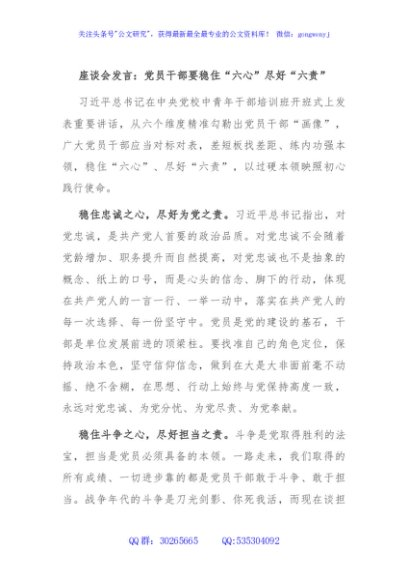 / 座谈会发言:党员干部要稳住“六心”尽好“六责”