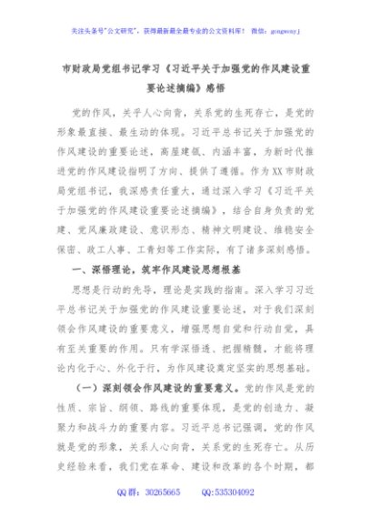 / 市财政局党组书记学习《习近平关于加强党的作风建设重要论述摘编》感悟