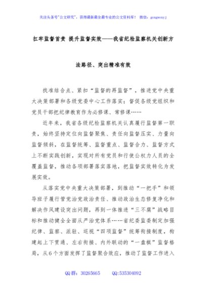 / 扛牢监督首责 提升监督实效——我省纪检监察机关创新方法路径、突出精准有效