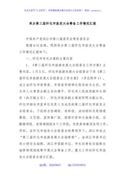 / 承办第三届怀化市旅发大会筹备工作情况汇报