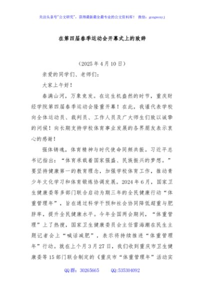 / 学校在第四届春季运动会开幕式上的致辞
