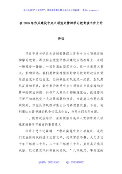 / 在2025年作风建设中央八项规定精神学习教育读书班上的讲话
