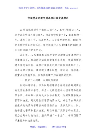 / 市国税局创建文明单位经验交流材料