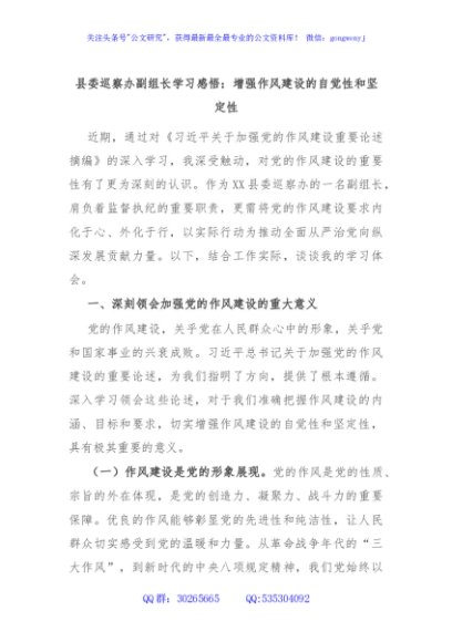 / 县委巡察办副组长学习感悟:增强作风建设的自觉性和坚定性