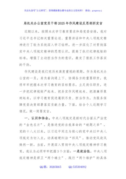 / 局机关办公室党员干部2025年作风建设反思剖析发言