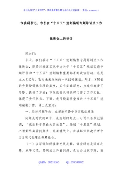 / 市委副书记、市长在“十五五”规划编制专题培训及工作推进会上的讲话