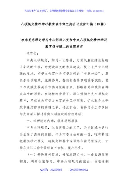 / (13篇)八项规定精神学习教育读书班交流研讨发言汇编