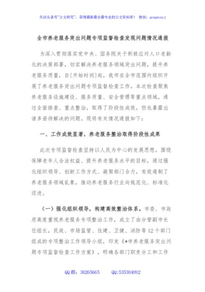 / 全市养老服务突出问题专项监督检查发现问题情况通报