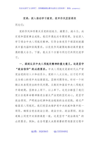 / 党课:深入推动学习教育,筑牢作风坚固堤坝