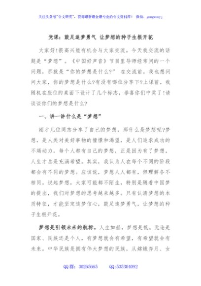 / 党课:鼓足追梦勇气 让梦想的种子生根开花
