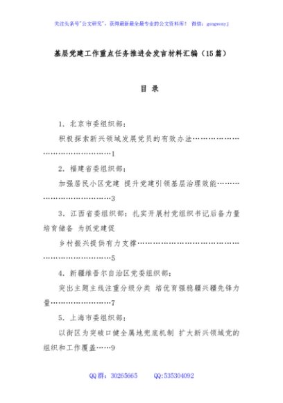 / (15篇)基层党建工作重点任务推进会发言材料汇编