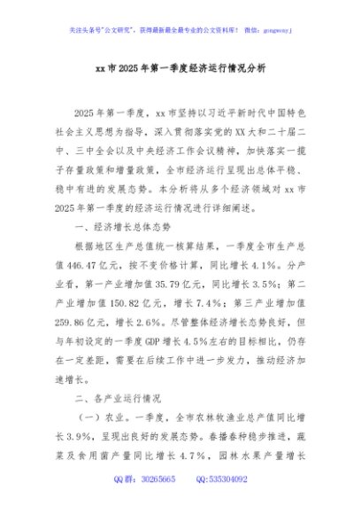 / xx市2025年第一季度经济运行情况分析