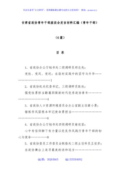 / (6篇)甘肃省政协青年干部座谈会发言材料汇编(青年干部)
