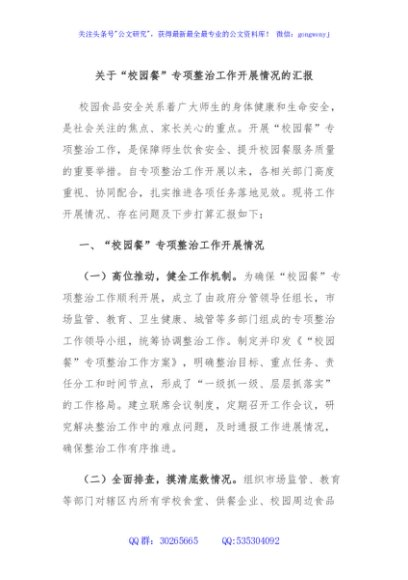 / 关于“校园餐”专项整治工作开展情况的汇报