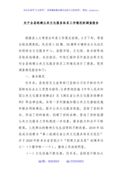 / 关于全县构建公共文化服务体系工作情况的调查报告