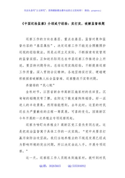 / 《中国纪检监察》介绍咸宁经验:实打实,破解监督难题