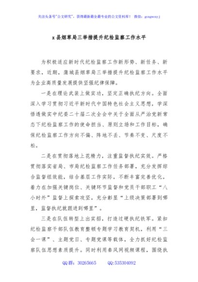 / x县烟草局三举措提升纪检监察工作水平