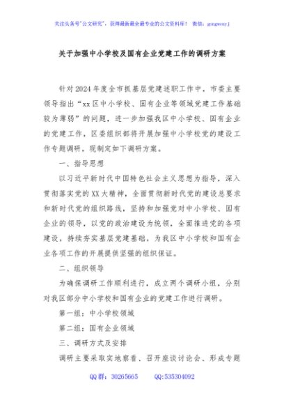 / 关于加强中小学校及国有企业党建工作的调研方案