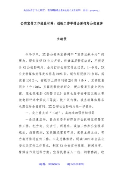 / 公安宣传工作经验材料:创新工作举措全面打好公安宣传主动仗