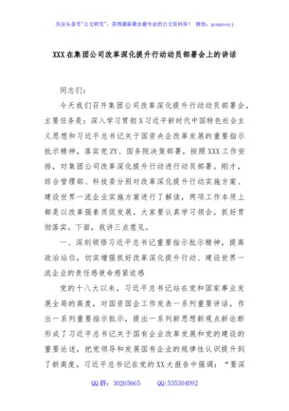 / XXX在集团公司改革深化提升行动动员部署会上的讲话