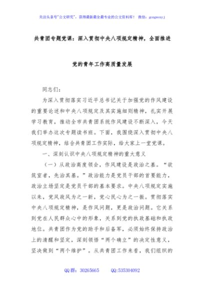/ 共青团专题党课:深入贯彻中央八项规定精神,全面推进党的青年工作高质量发展
