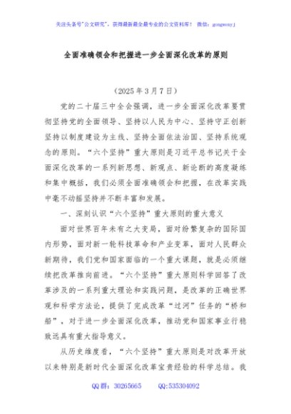 / 全面准确领会和把握进一步全面深化改革的原则