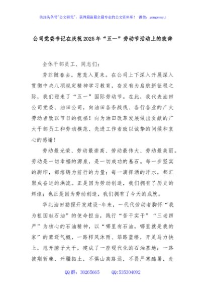 / 公司党委书记在庆祝2025年“五一”劳动节活动上的致辞