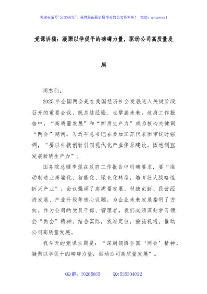 / 党课讲稿:凝聚以学促干的磅礴力量,驱动公司高质量发展